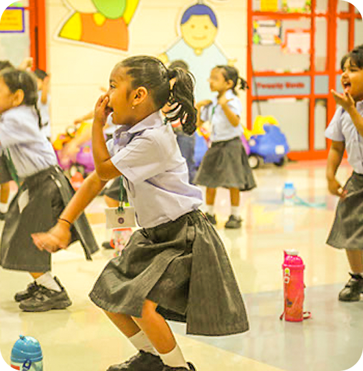 The essence of the program is in dance expression, knowledge and creativity; the goes beyond the periphery of dance movement. Using Jazz technique, Ballet exercises, Yoga Asanas, Dance Therapy activities, theatre arts; each class has a well defined syllabus for skillful progression to improve fitness levels, confidence, focus, concentration, team spirit, positive thinking, discipline, all round development, posture and body language.